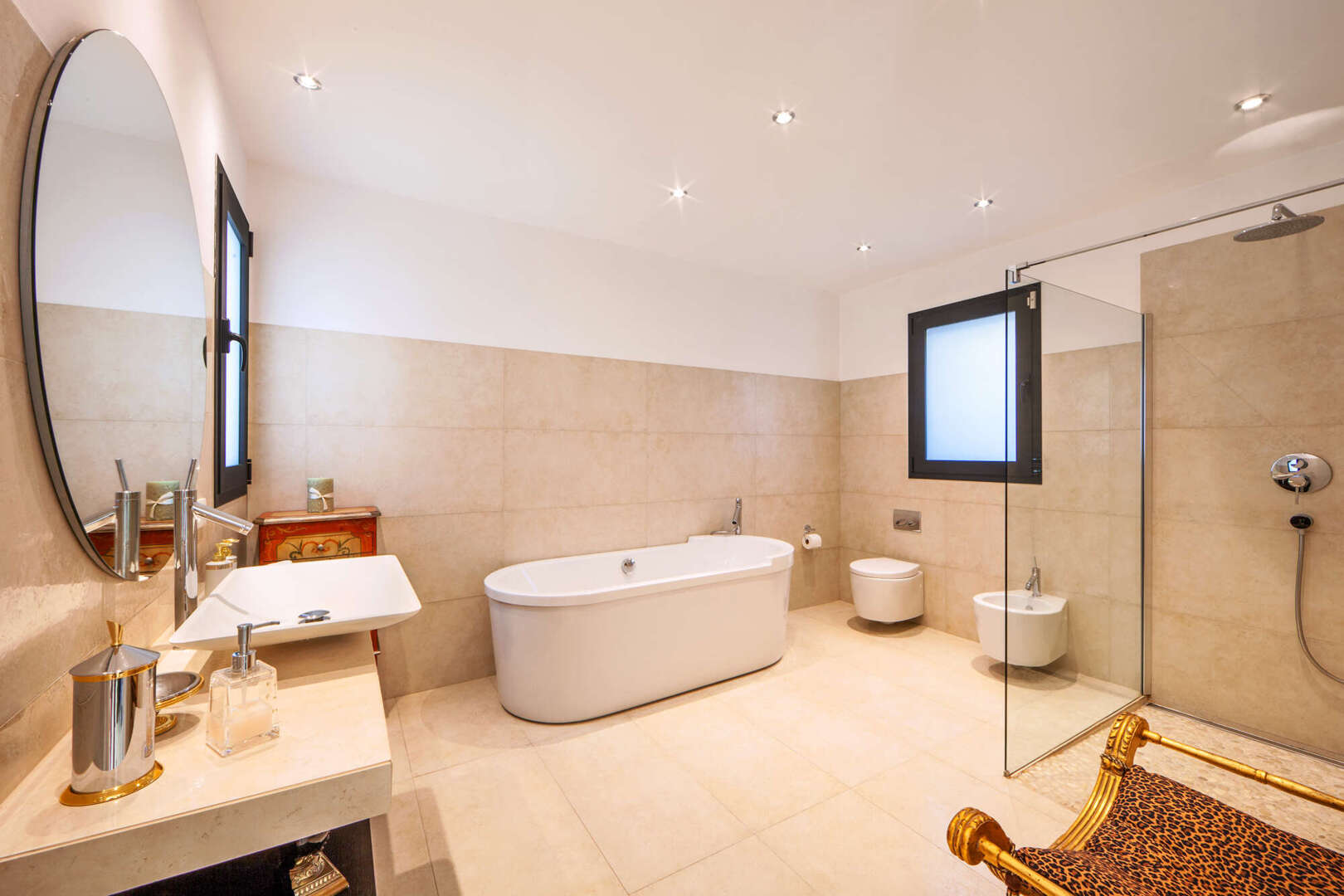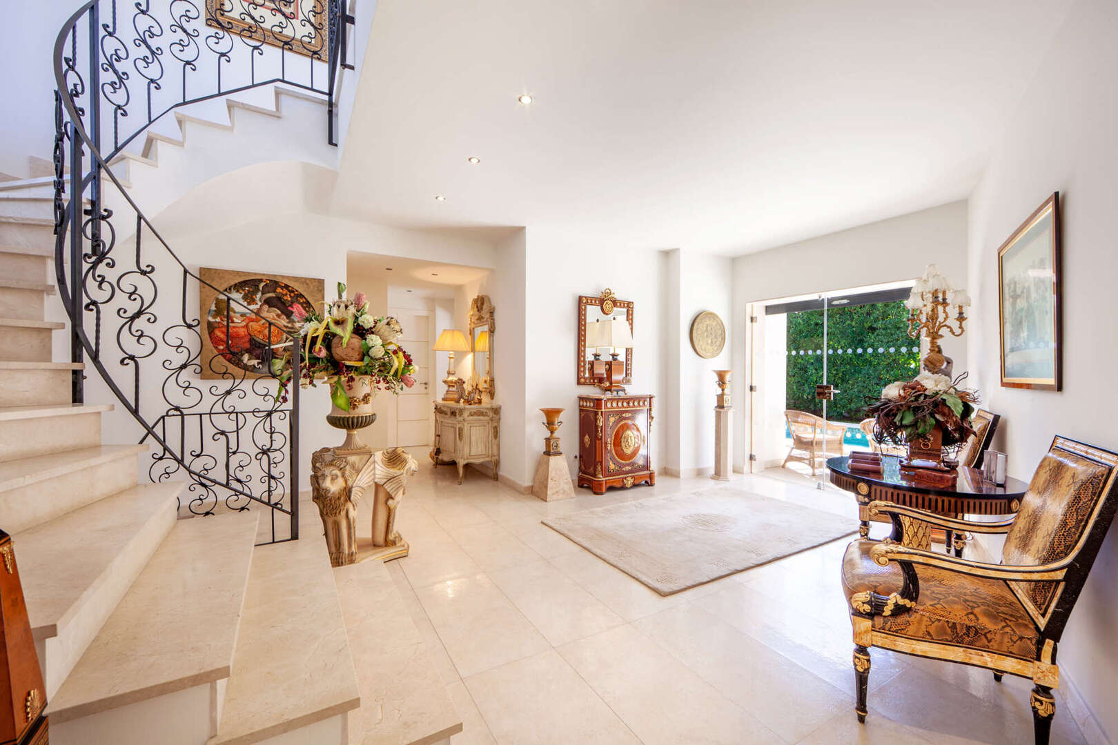 Auf einem großzügigen 650 m² großen Grundstück erstreckt sich eine Wohnfläche von 380 m², die zeitlose Eleganz ausstrahlt. Lichtdurchflutete Räume schaffen eine warme, einladende Atmosphäre, während die offenen Wohnbereiche fließend ineinander übergehen und ein Gefühl von Weite vermitteln. Große Fenster rahmen beeindruckende Ausblicke auf die umliegende mallorquinische Landschaft. Vier geschmackvoll gestaltete Schlafzimmer und drei Badezimmer bieten höchsten Komfort und Privatsphäre.
