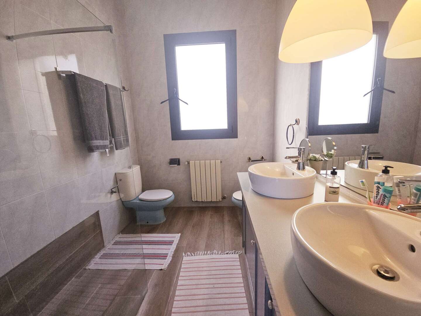 Im Obergeschoss erwarten Sie zwei weitere großzügige Schlafzimmer sowie ein gemeinsames Badezimmer mit Dusche. Ein besonderes Highlight ist die weitläufige Terrasse, die zusätzlichen Raum zum Entspannen bietet und einen schönen Blick ins Grüne eröffnet.