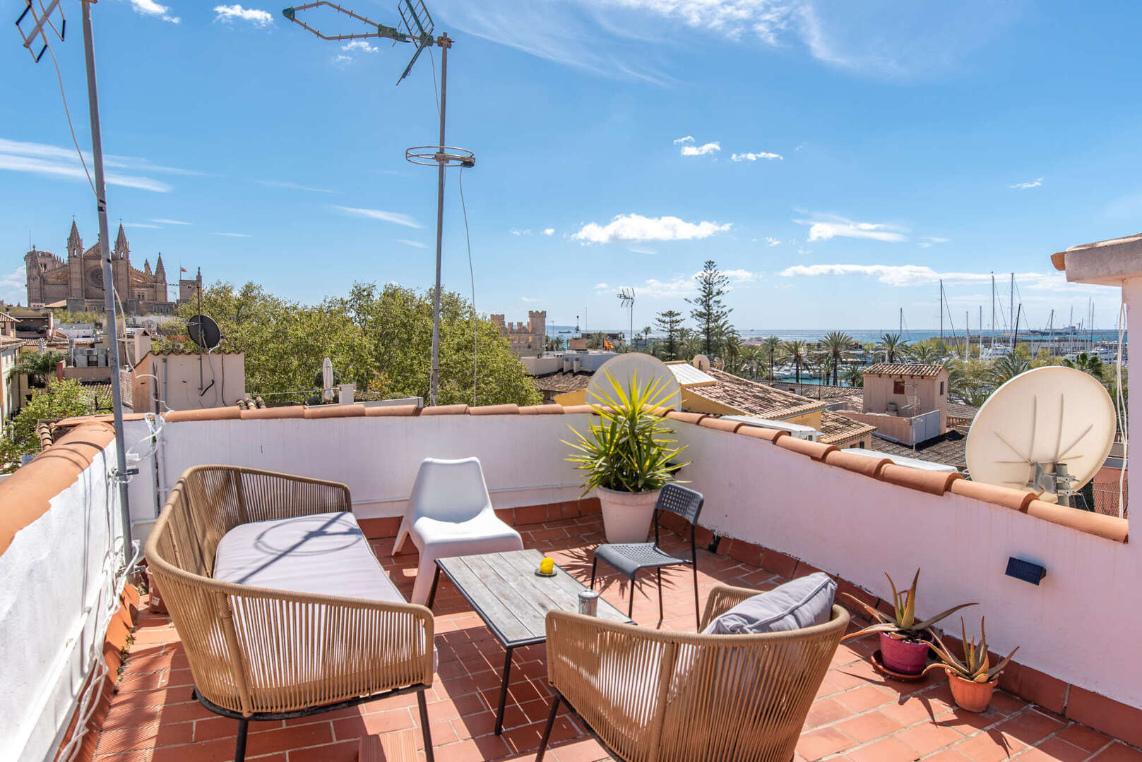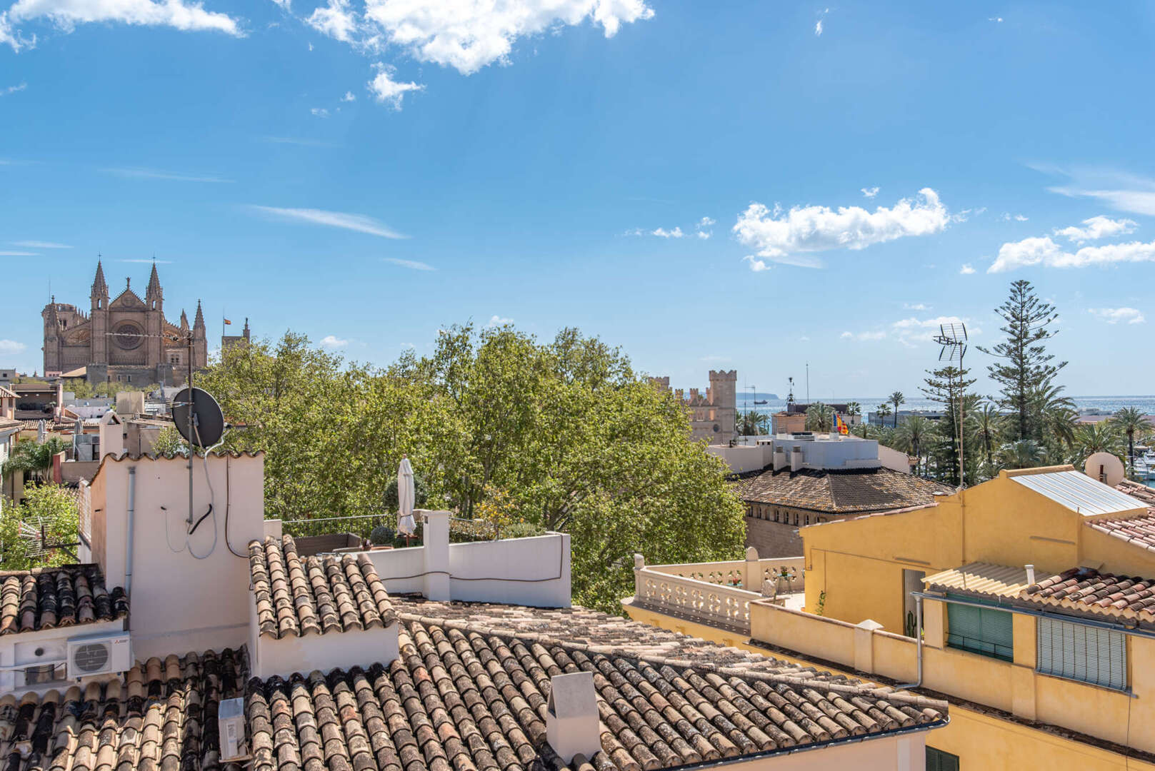 Ein echtes Highlight ist die gemeinschaftlich nutzbare Dachterrasse, die einen beeindruckenden Blick über die Dächer Palmas auf die Kathedrale eröffnet und einen seltenen Rückzugsort in dieser zentralen Lage darstellt.