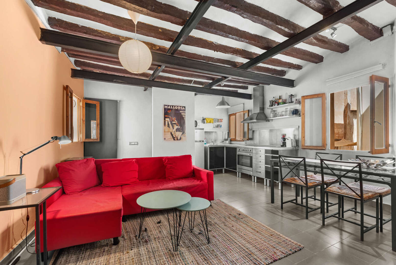 Hervorzuheben sind die sichtbaren Holzbalken, die dem Apartment seinen authentischen mallorquinischen Charakter verleihen und eine warme, stilvolle Wohnatmosphäre schaffen.