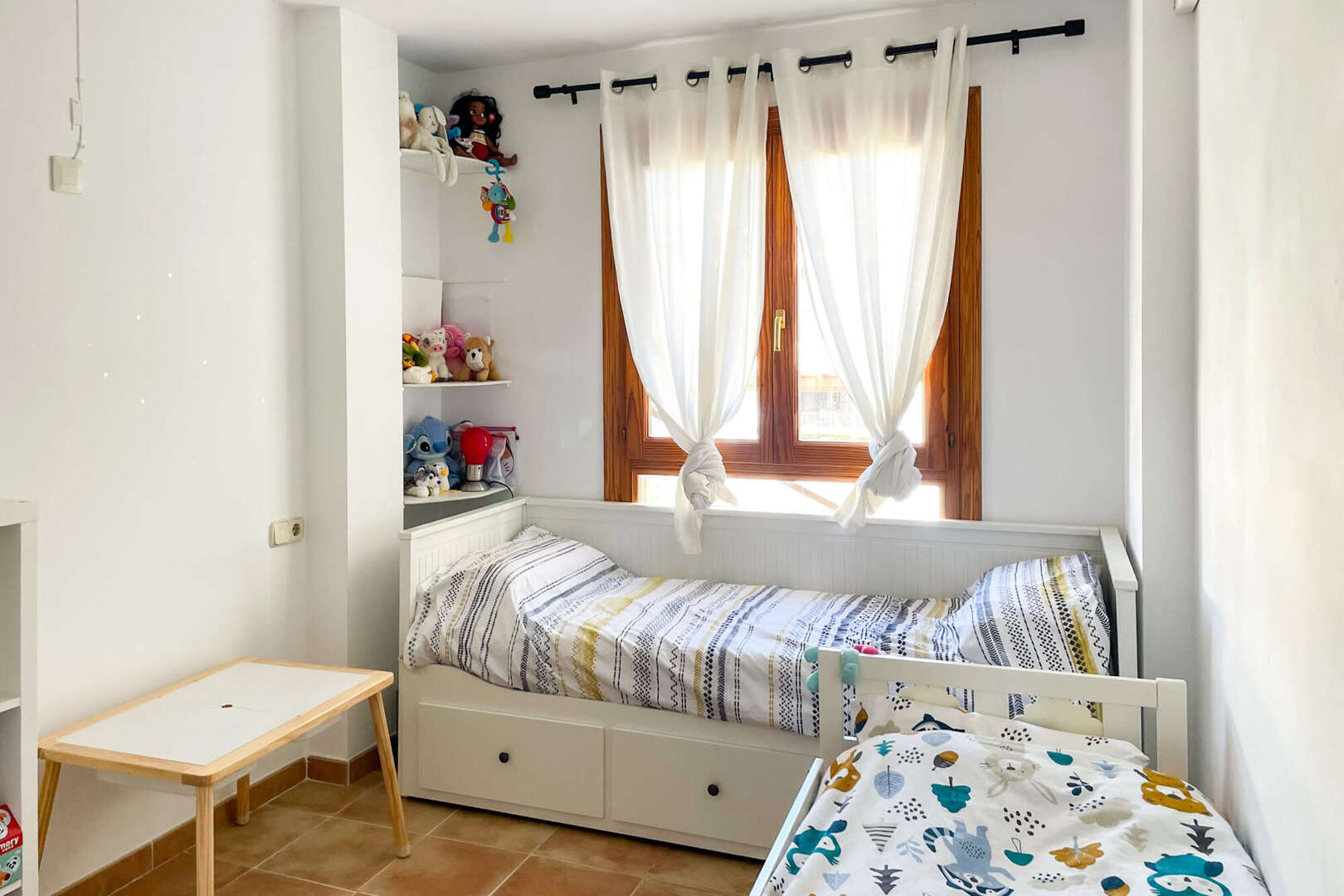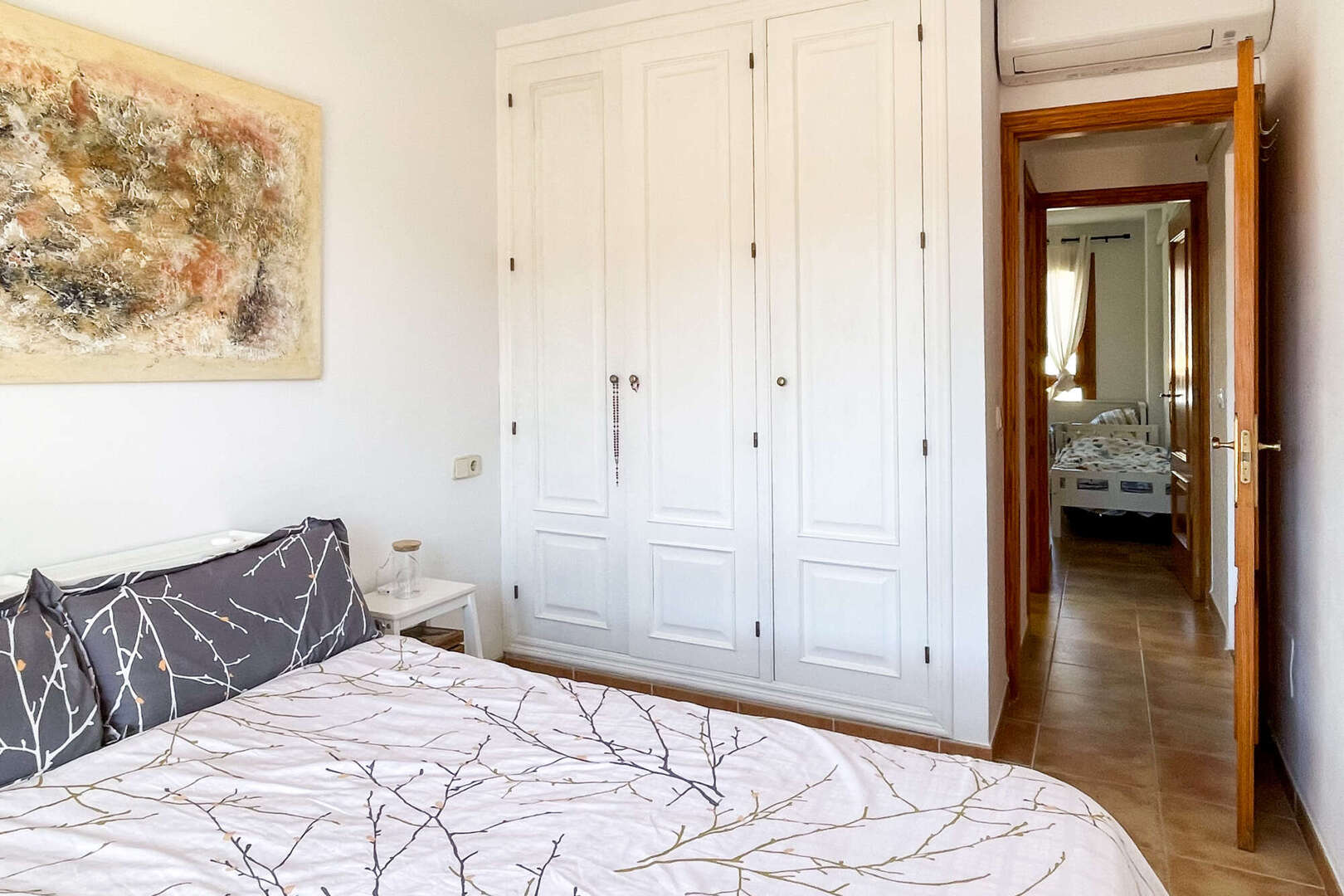 Für ein angenehmes Raumklima zu jeder Jahreszeit sorgen Klimaanlagen im Wohnzimmer sowie im Hauptschlafzimmer, unterstützt durch Deckenventilatoren in beiden Bereichen. Ein großer Vorteil im Alltag ist der dazugehörige Garagenstellplatz, der für zusätzlichen Komfort sorgt.