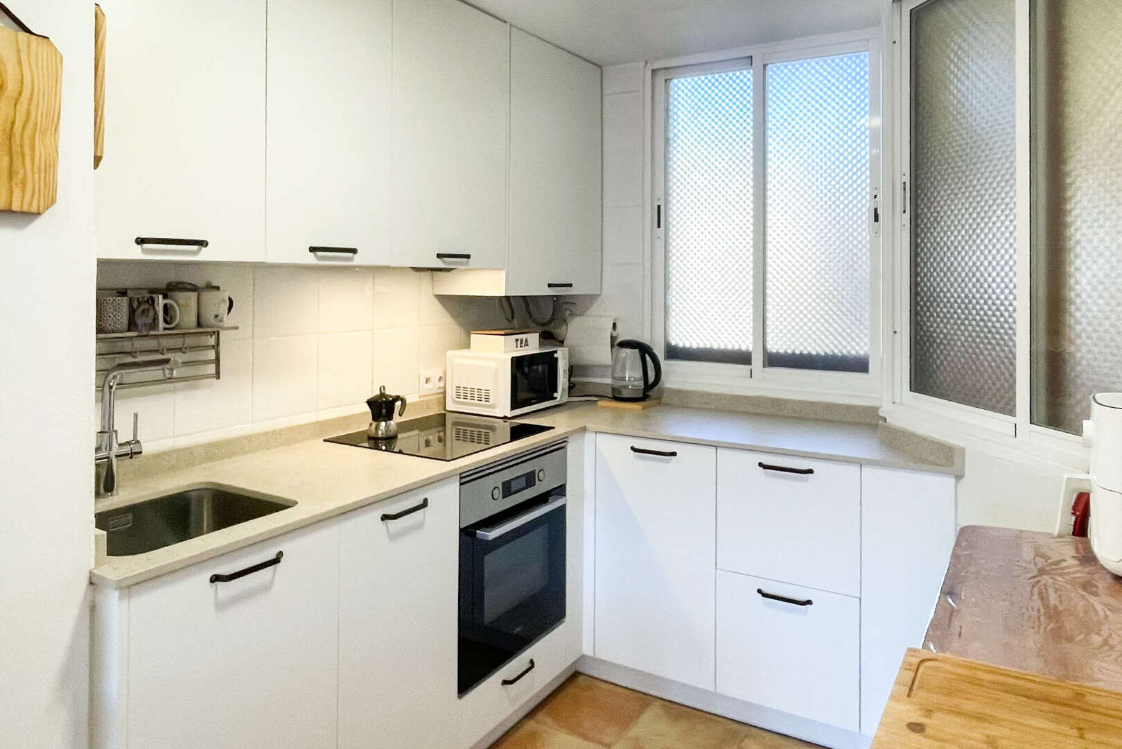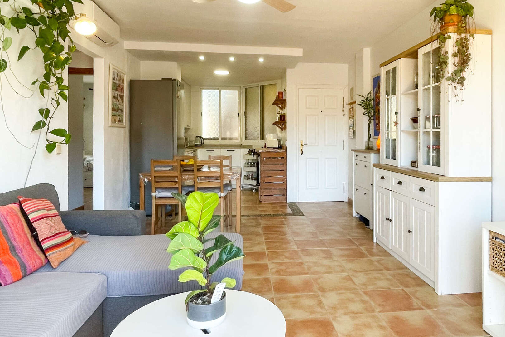 In einer ruhigen und gut angebundenen Lage von Capdepera befindet sich diese einladende Wohnung, die durch ein funktionales Raumkonzept und viel natürliches Licht überzeugt. Der zentrale Mittelpunkt ist das helle Wohn- und Esszimmer mit seiner integrierten, offen gestalteten Küche. Diese wurde erst kürzlich renoviert und fügt sich modern und platzsparend direkt in den Wohnraum ein.