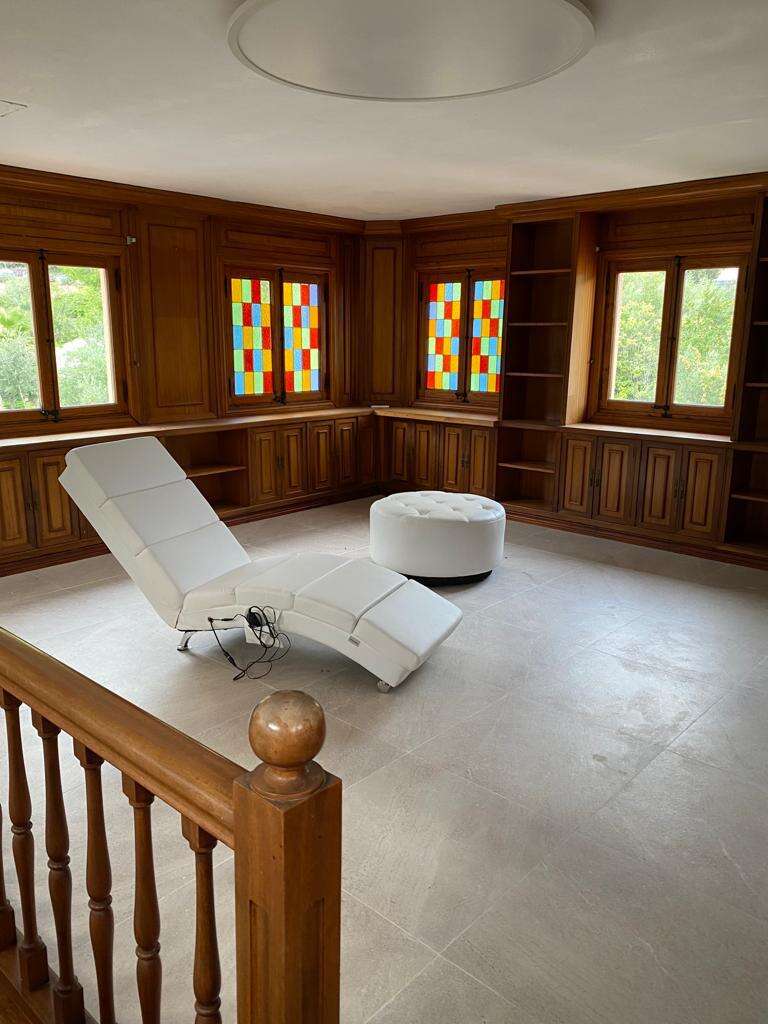 Auf insgesamt 820 m² Wohnfläche (700 m² Haupthaus + 120 m² Gästehaus) verteilen sich 7 Schlafzimmer, 7 Badezimmer, Küche, Esszimmer und Wohnzimmer mit Kamin und Klimaanlagengeräte sorgen für ein Wohlbefinden . Zusätzlich befindet sich im Turmzimmer eine ehemalige Bibliothek und im Untergeschoss ein großzügiger Saal, welcher viel Potential zur Nutzung bietet. Ein Fitnessstudio für Sportfreunde, ein Schulungsraum für Firmeninhaber oder ein Studio für sämtliche Arten von Retreats wie z. B. Yoga oder Meditation.