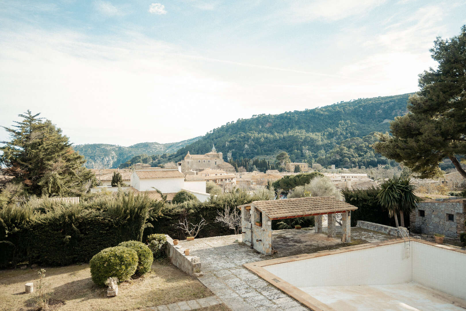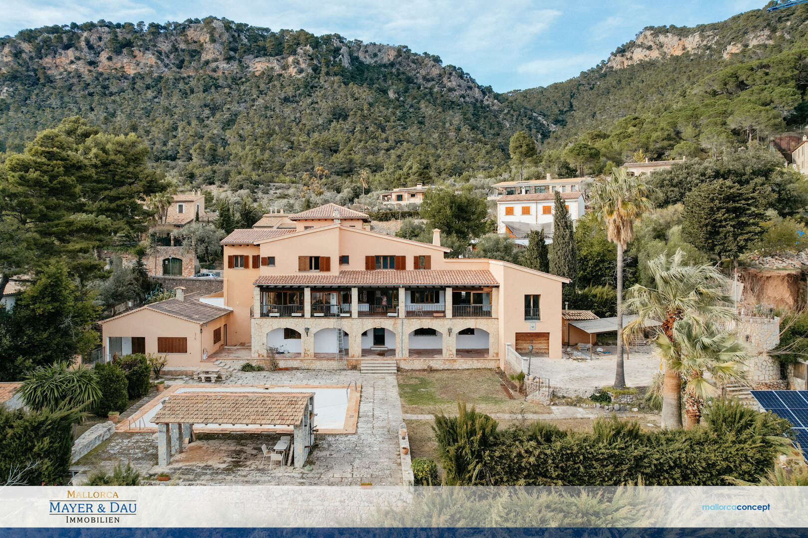 Herrschaftliches Anwesen im Unesco Weltkulturerbe der Serra de Tramuntana mit Blick auf das malerische Bergdorf Valldemossa, welches als eines der schönsten Dörfer Mallorcas gilt.