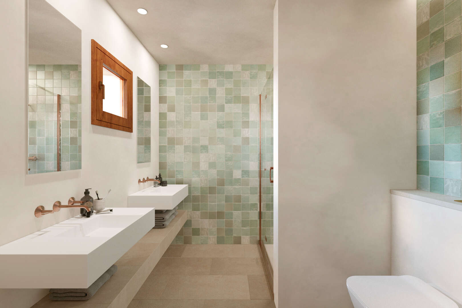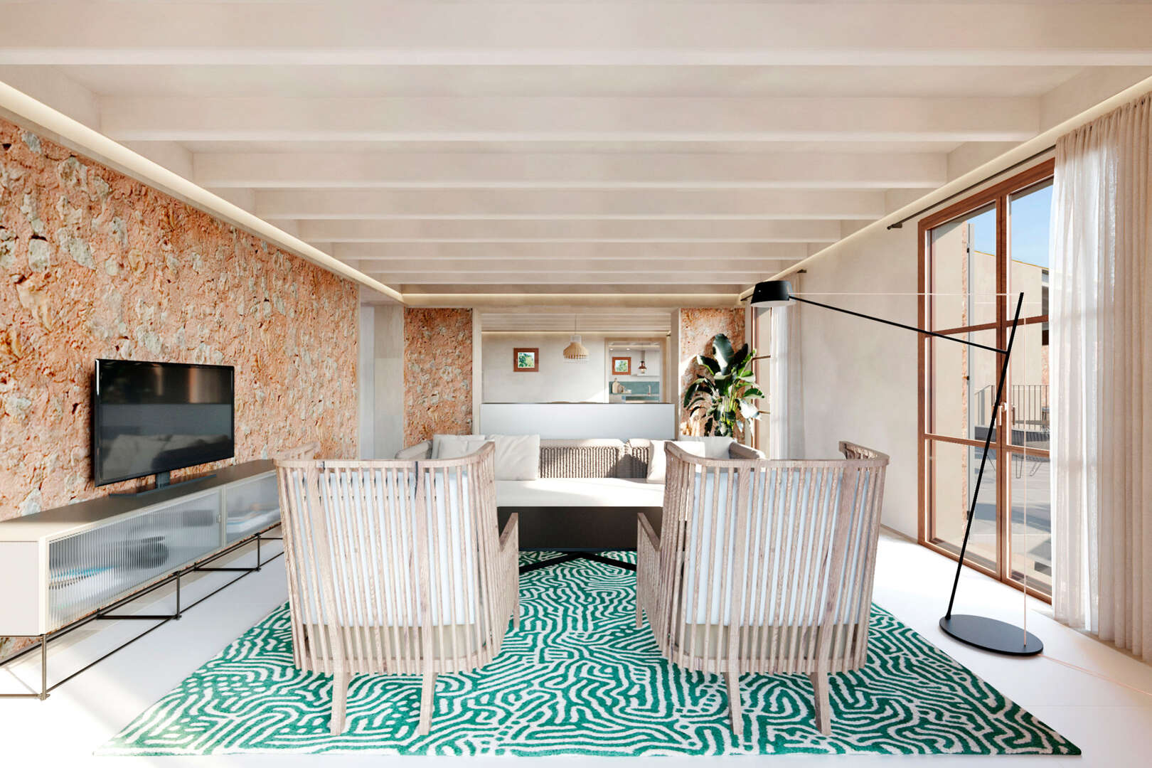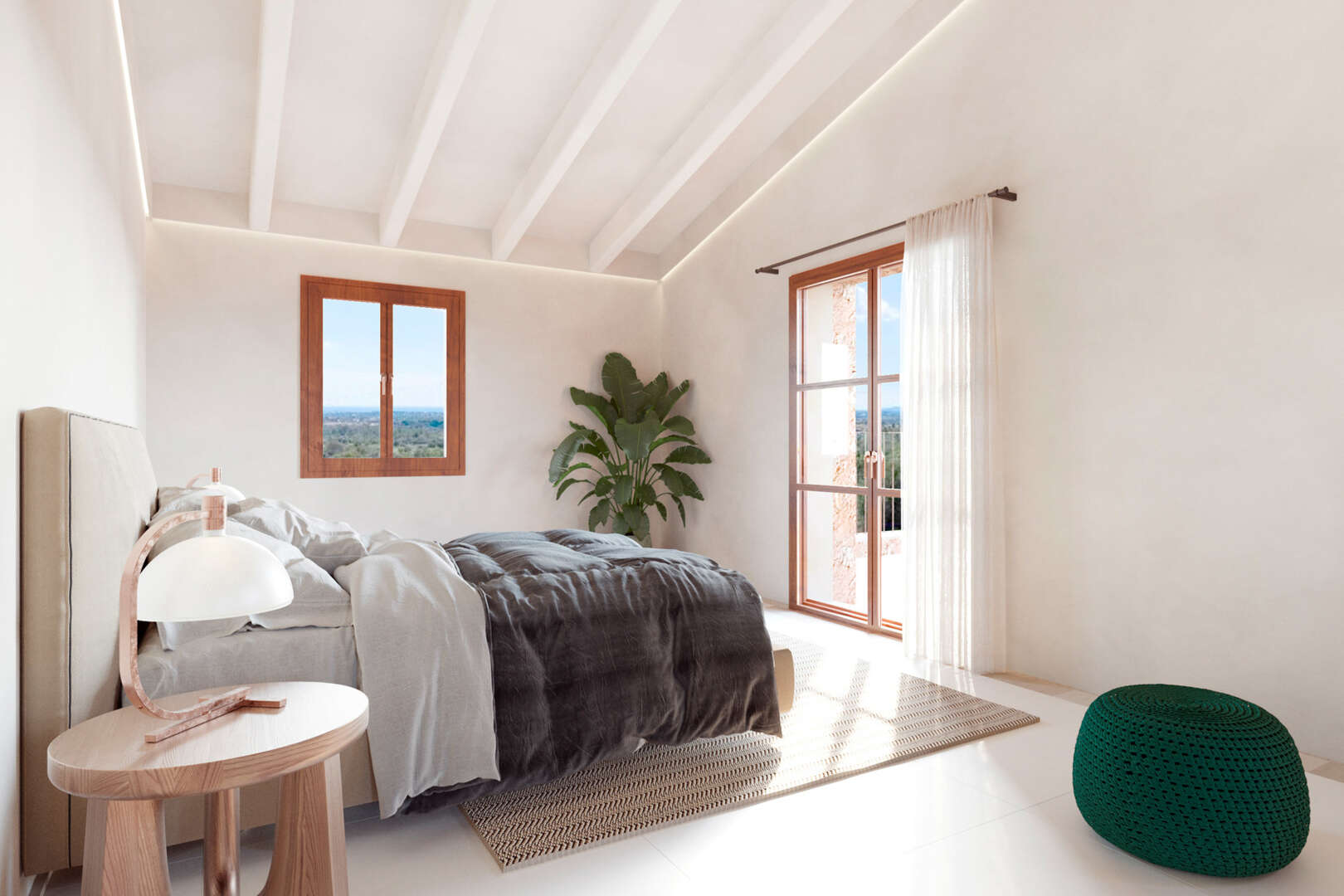 Das Obergeschoß aufgeteilt in ca. 107 m² bebaute Fläche wird über einen Flur, 2 Doppelschlafzimmer, ein Badezimmer, sowie ein zusätzliches Gästezimmer mit Ankleideraum und Bad " en Suite" verfügen. Die großen bodentiefen Fenster verleihen dieser attraktiven Finca, ein helles und freundliches Ambiente.
