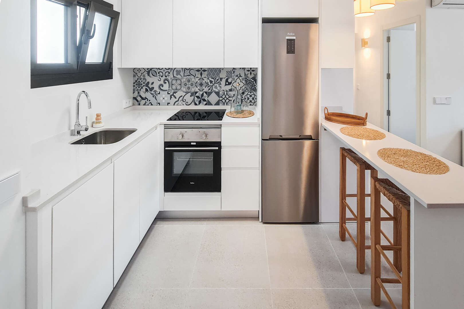 Diese liebevoll und mit viel Geschmack eingerichtete Wohnung ist gerade frisch renoviert worden. Die lichtdurchfluteten Zimmer überzeugen mit ihren warmen hellen Farbtönen und werden komplett möbliert vermietet. Die 75 m² große Wohnung verfügt über 2 Schlafzimmer die jeweils mit Einbauschränken ausgestattet sind, 1 Bad mit Dusche, 1 Gäste WC mit einer Waschmaschine und integriertem Trockner. Ihnen steht eine nagelneue amerikanische Einbauküche mit Herd, Backofen, Spülmaschine und einem großen Kühlschrank mit Gefrierfach zur Verfügung. Die Küche ist durch eine Theke zum Wohnzimmer hin offen. Eine Klimaanlage, welche Sie sogar von unterwegs "per App steuern" können ist ebenso in der Mietwohnung vorhanden.