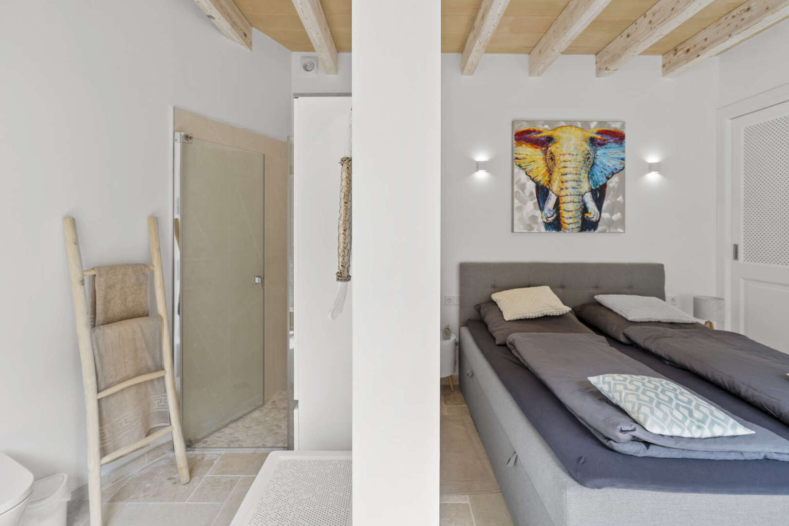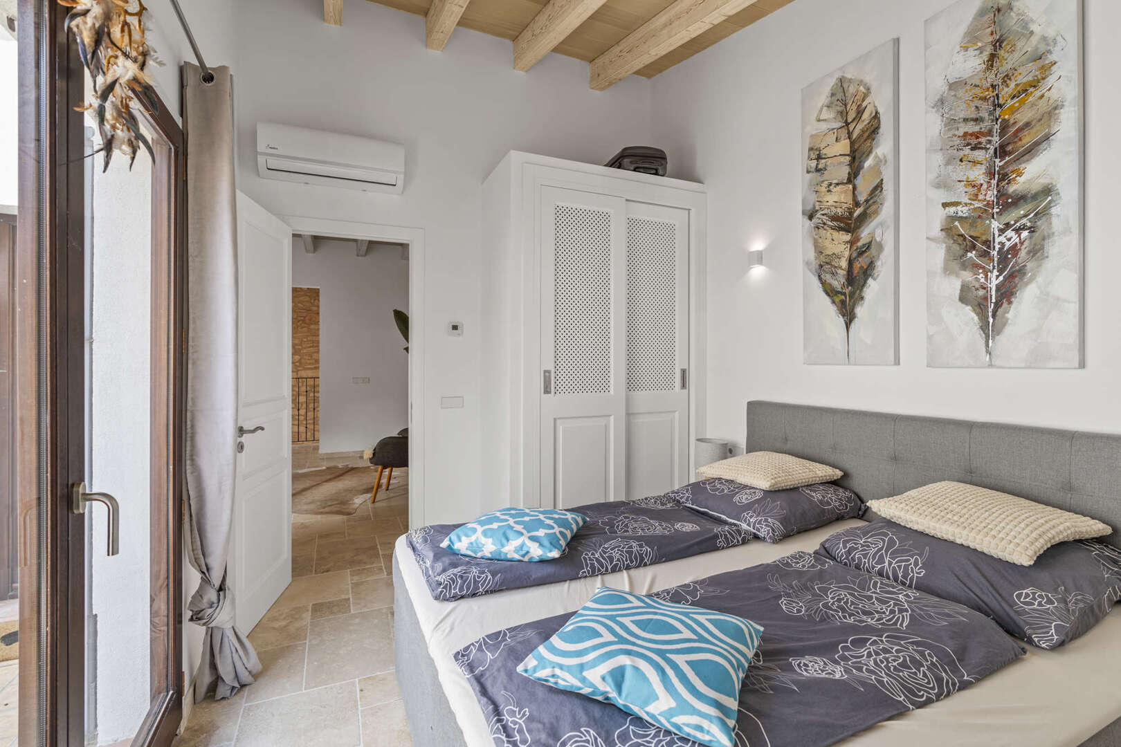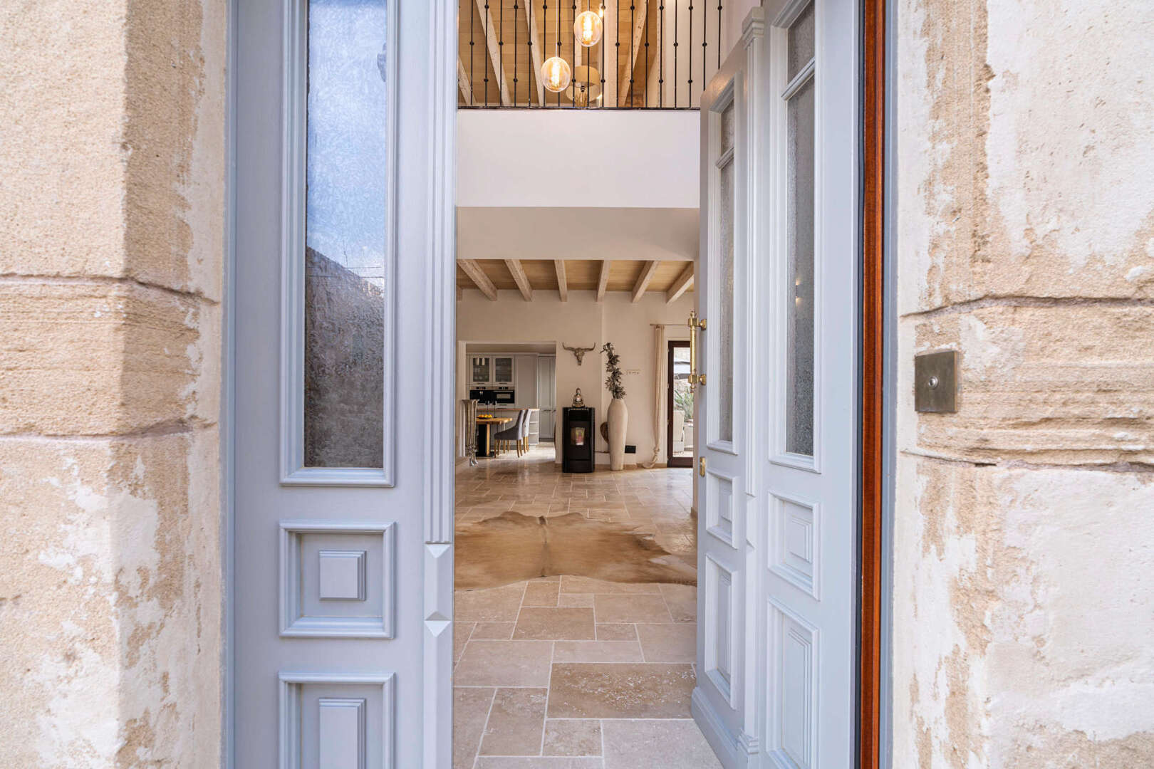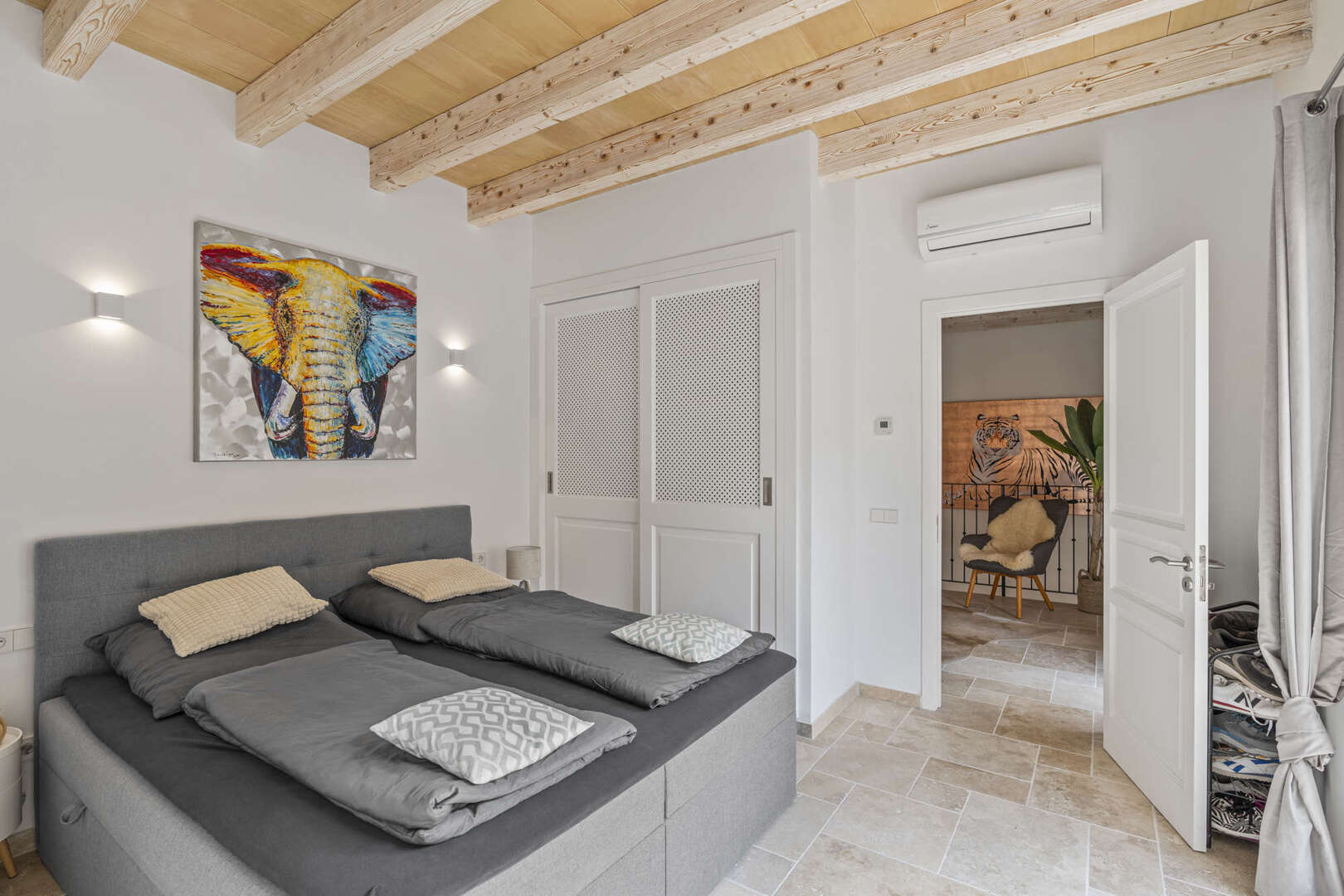 * Mallorquinisches Flair durch Holz-Deckenbalken und Steinverkleidungen der Wände