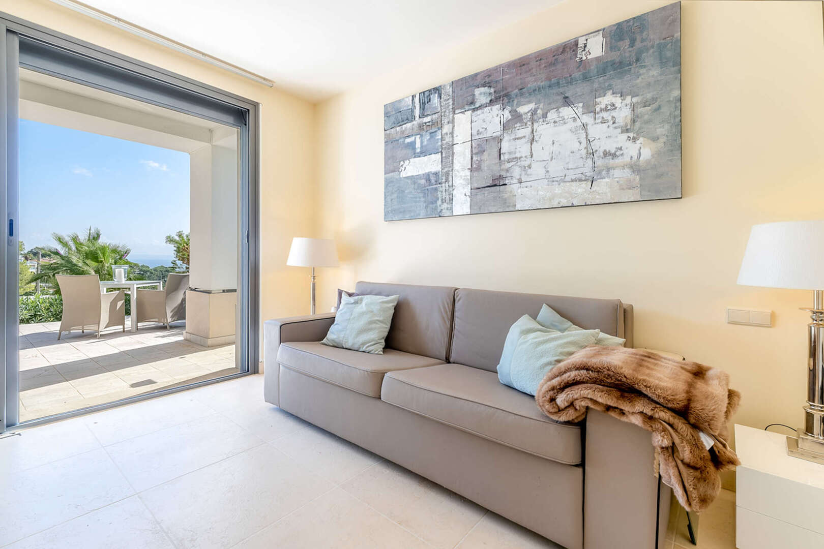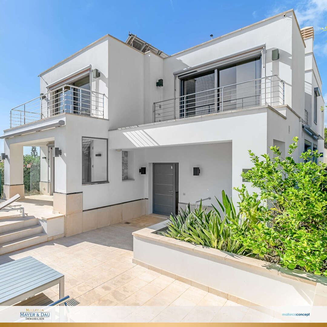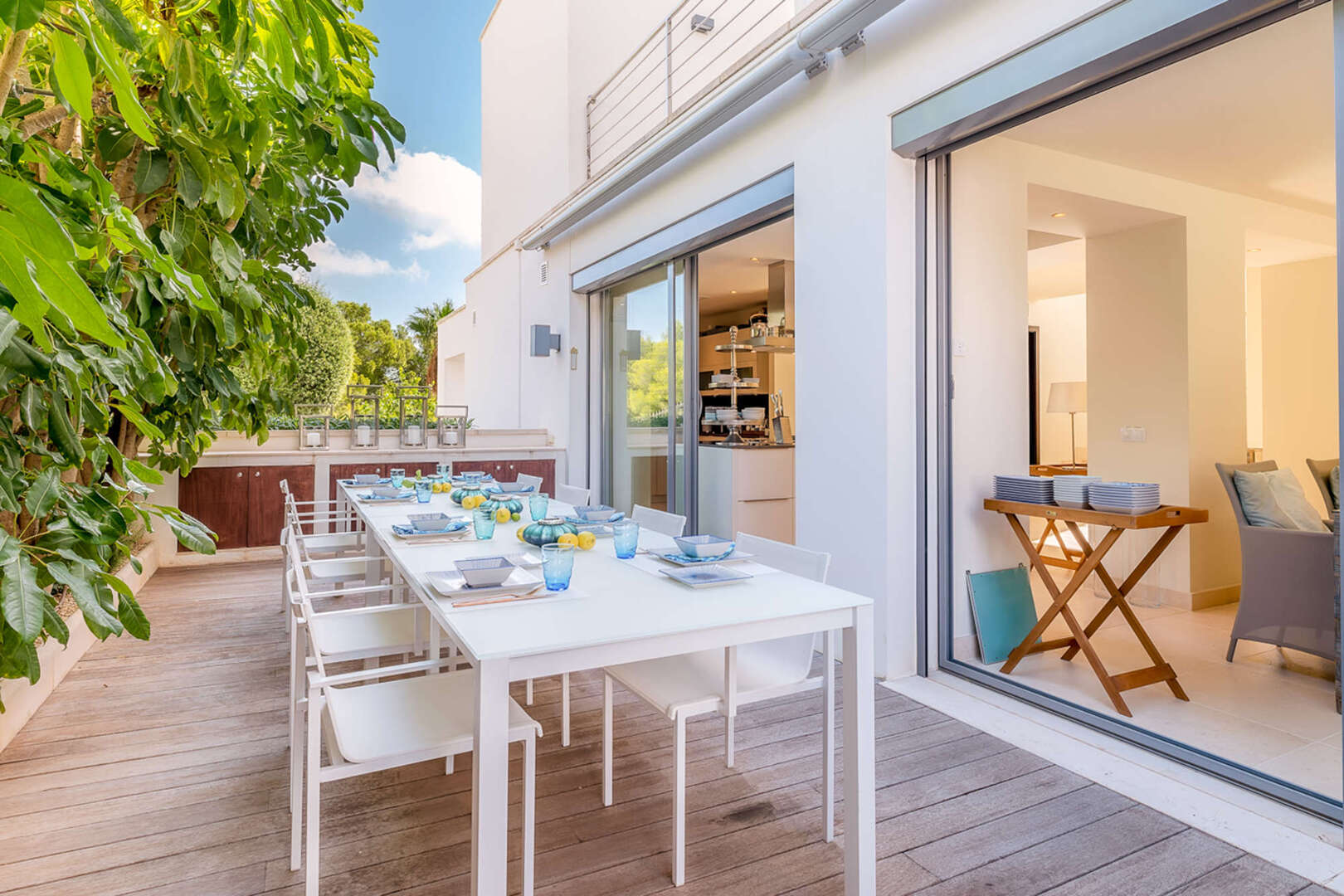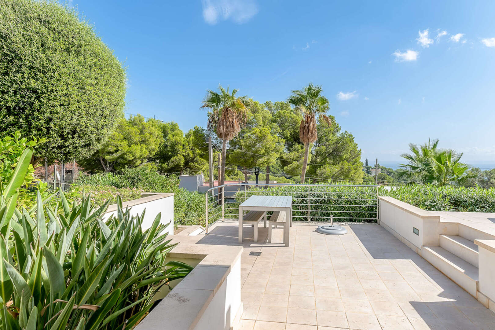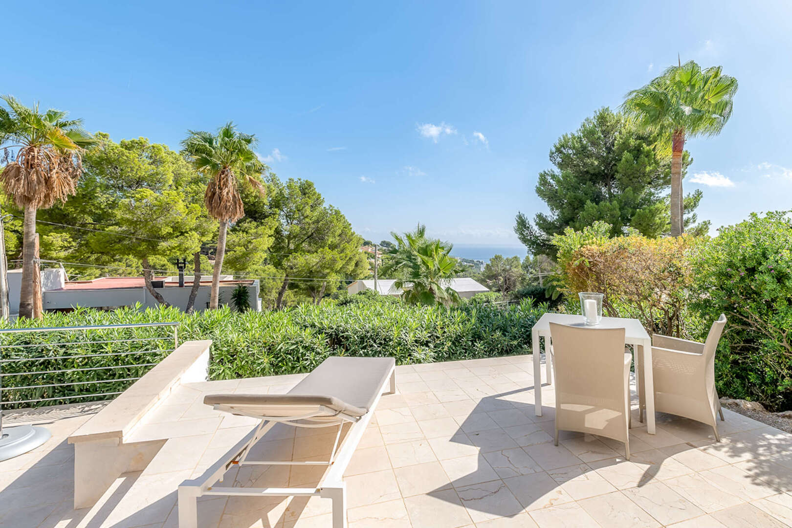 Die weitläufige Terrasse im Erdgeschoss bietet reichlich Platz zum Entspannen und Genießen der mediterranen Sonne. Der Blick aufs Meer ist hier besonders beeindruckend.