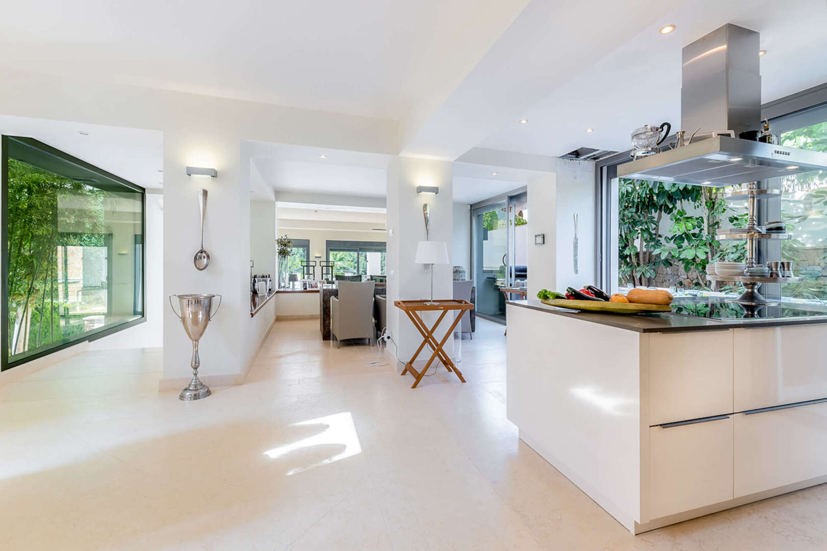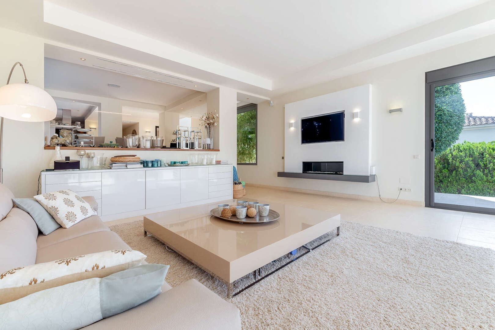 Der offene Wohn- und Essbereich ist lichtdurchflutet und bietet einen direkten Zugang zur Terrasse. Große Fensterfronten lassen viel Tageslicht herein und ermöglichen einen atemberaubenden Meerblick.