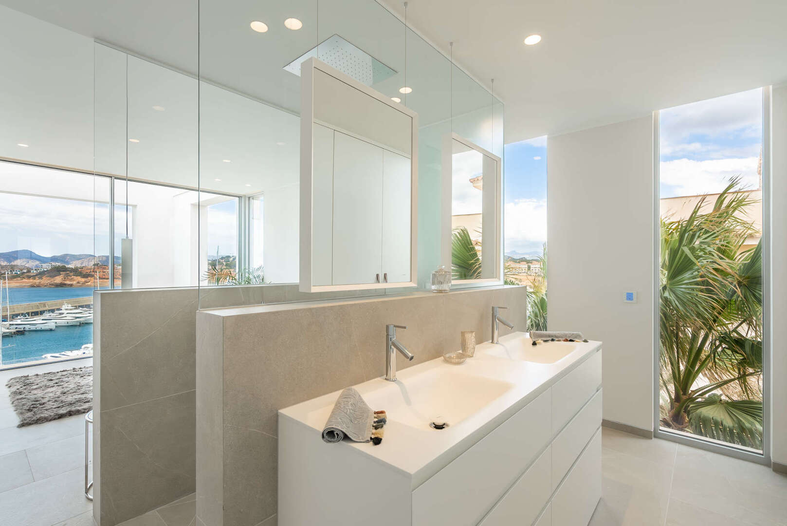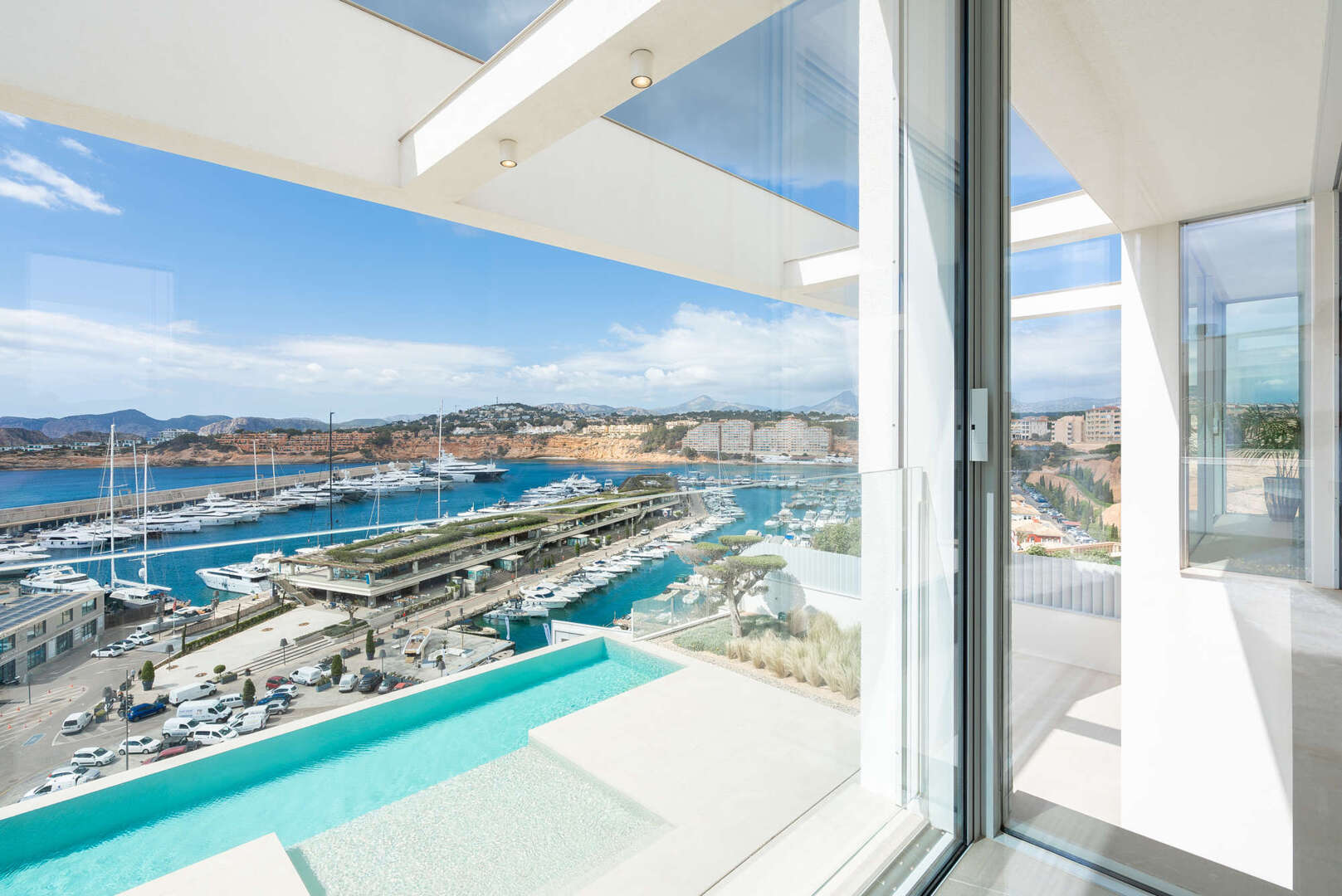 Diese exklusive Residenz bietet hochwertige Materialien, atemberaubende Ausblicke und eine durchdachte Raumaufteilung. Großzügige Fensterfronten rahmen den Hafen von Port Adriano ein, während der Architekt besondere Highlights gesetzt hat. Ein Highlight ist die Designer-Küche, eine Pool-Terrasse mit einem über 100 m² großen Pool, zwei Schlafzimmer im Obergeschoss, zwei im Untergeschoss - jeweils mit eigenen Bädern und Suiten -, ein Fitnessraum, ein Kinosaal und spektakuläre Meerblicke, die auch von der Dachterrasse aus genossen werden können.