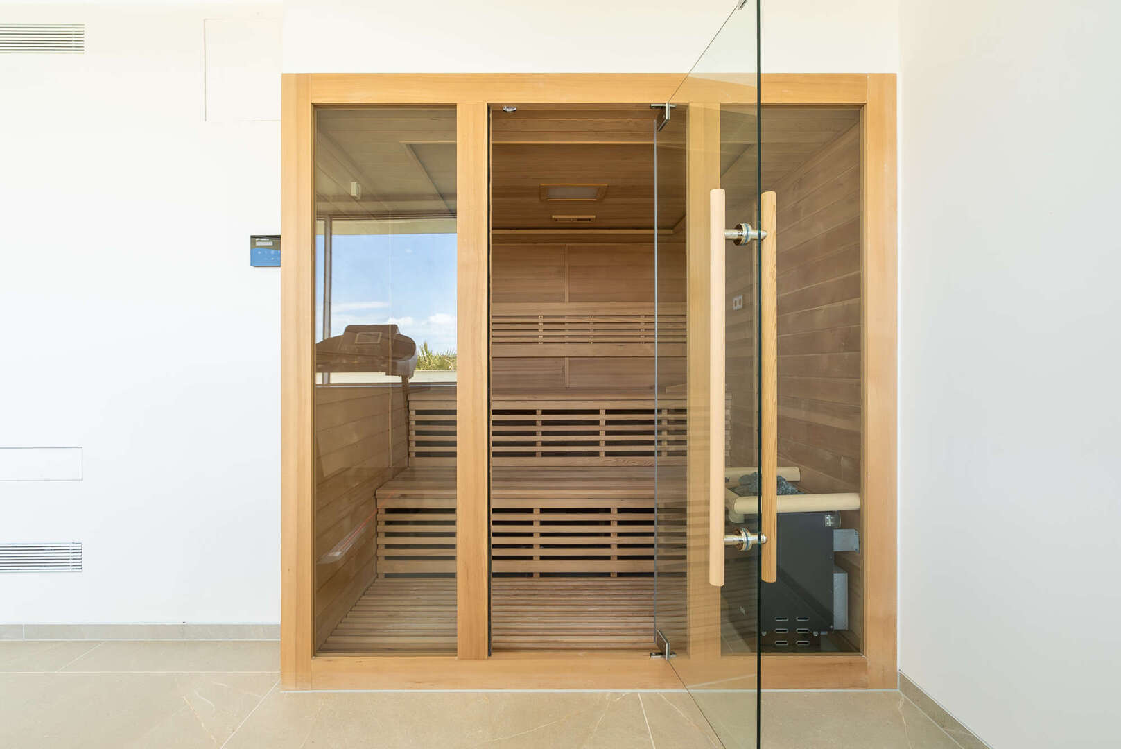 Eine eigene Aufzugsanlage, hochwertige Klimaanlagen, Fußbodenheizung, ein Bus-System, eine Garage und Parkplätze, ein Weinkeller, vier Schlafzimmer, vier Badezimmer, auf einem Grundstück von 900 m² mit einer Nutzfläche von 615 m² inklusive einer separaten Wohnung - diese Villa verkörpert wahrhaft die Quintessenz von Luxus und Eleganz.