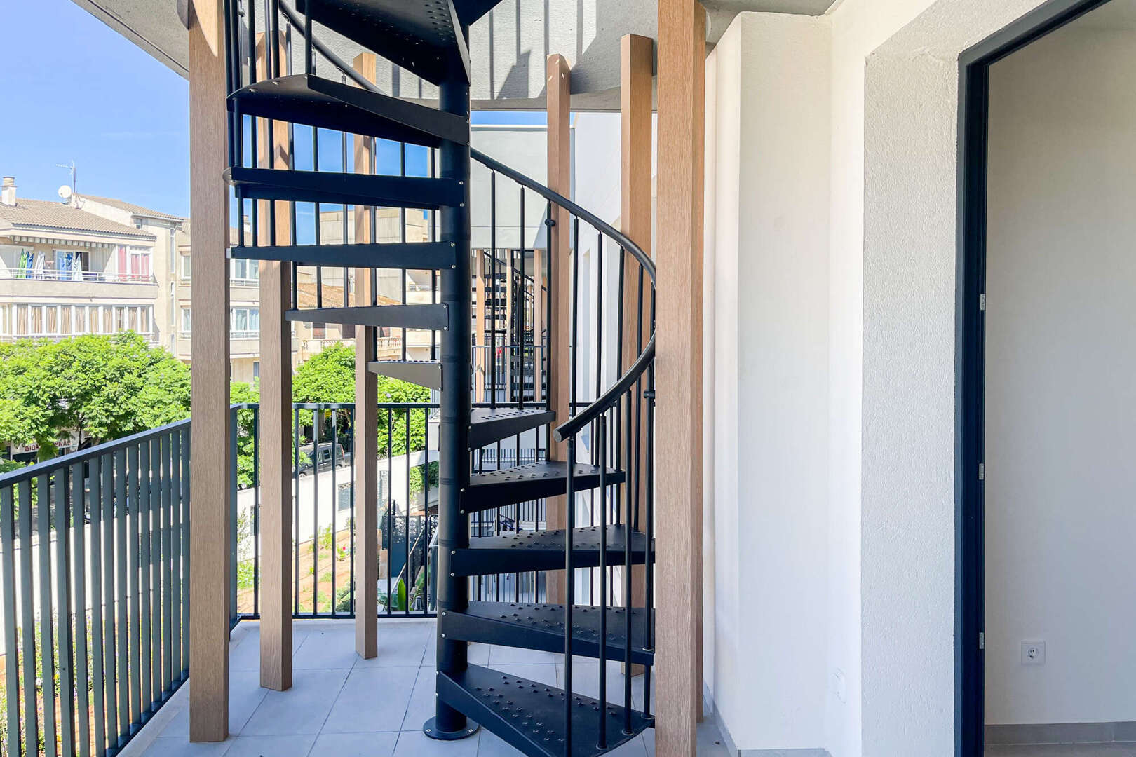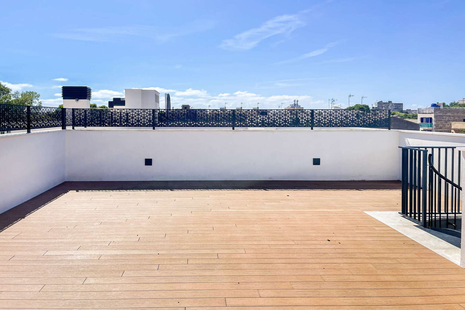 Diese Penthouse Wohnung ist im 2. Stock gelegen und erstreckt sich über eine Quadratmeterzahl von 98 m² zuzüglich 11,5 m² Balkon und einer 65 m² großen Dachterrasse. Ein offener Küchenbereich mit Zugang zu dem südlich ausgerichteten Balkon samt Wendeltreppe, die auf die große Dachterrasse führt, bilden das Herzstück der Neubauwohnung. Von dem Wohnbereich gehen zwei der drei Schlafzimmer ab, eines mit angrenzendem Bad en-suite. Das dritte Schlafzimmer grenzt an den Eingangsbereich und ist zur Rückseite der Wohnung ausgerichtet. Gleich daneben befindet sich ein Gäste-Bad mit bodenebener Dusche. In beiden Bädern ist ein durchdachtes Lichtkonzept mit indirekter Beleuchtung integriert. Ein großzügiger Hauswirtschaftsraum bietet die Möglichkeit zur Unterbringung von Technik und Haushaltsgeräten.